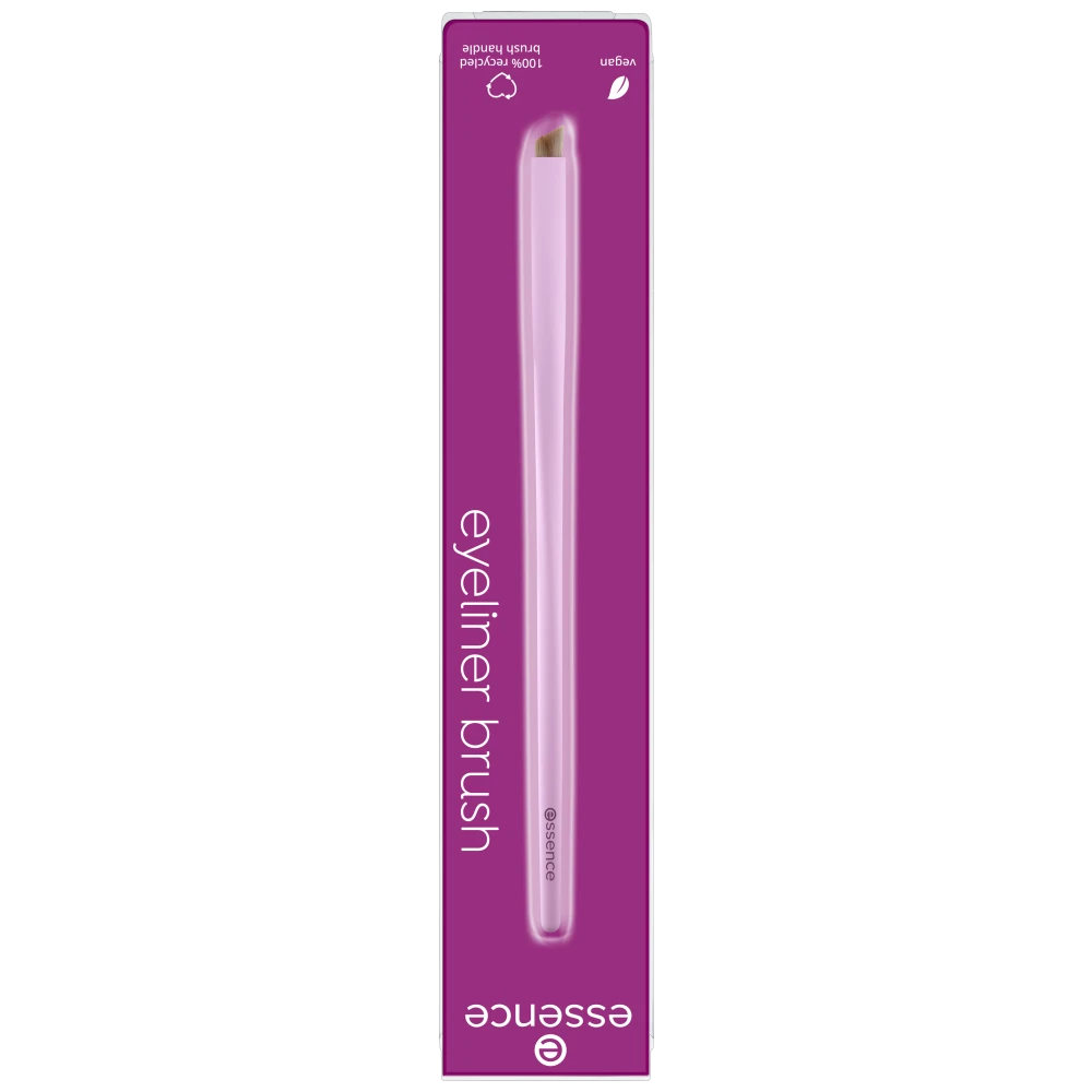 essence eyeliner brush features a unique shape and color. Soft bristles allow easy application of any product. The soft touch handle, made from 100% recycled material, combined with the small, beveled tip ensures precise lines. Ideal for gel eyeliner and creamy eyeshadow.