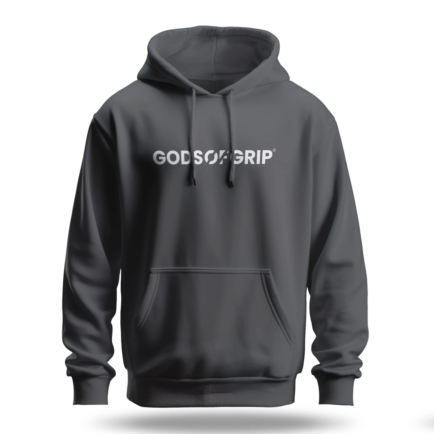Level up your workout swag with the gods of grip charcoal hoodie! The super soft fabric will keep you warm whilst getting in those grip gains.