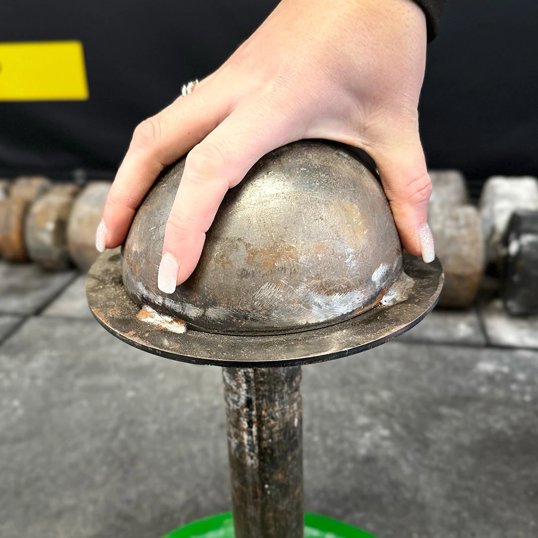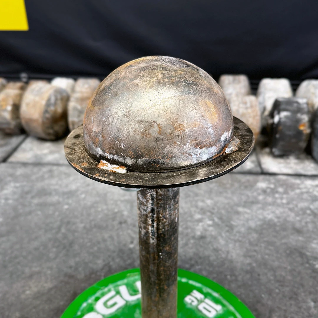The Glob is the end of a York 60lb globe dumbell which was coined as a feat by Chris Mathison and Jedd Johnson, who lift it Blob-style by spanning the top. The GlobTop (name produced with permission of Chris and Jedd) is designed to emulate this feat in a loadable fashion. It’s certainly a challenge!