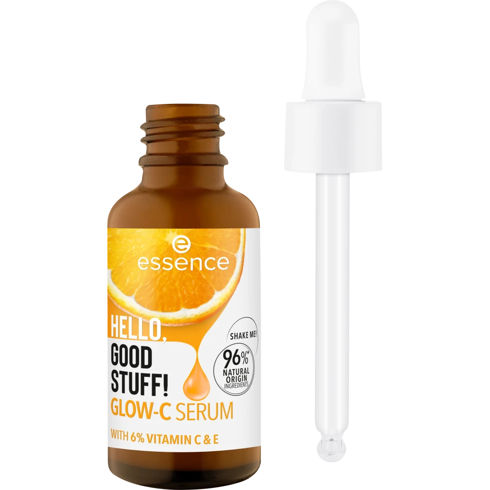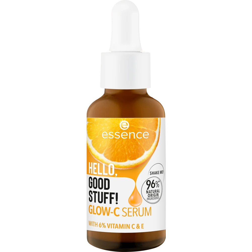 Say hello to radiant skin with essence Hello, Good Stuff! Glow-C Serum! Featuring 6% sodium ascorbyl phosphate, vitamin E, and orange extract, this lightweight formula absorbs fast to brighten, protect, and refresh.