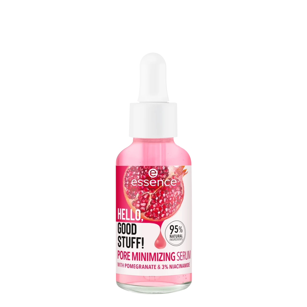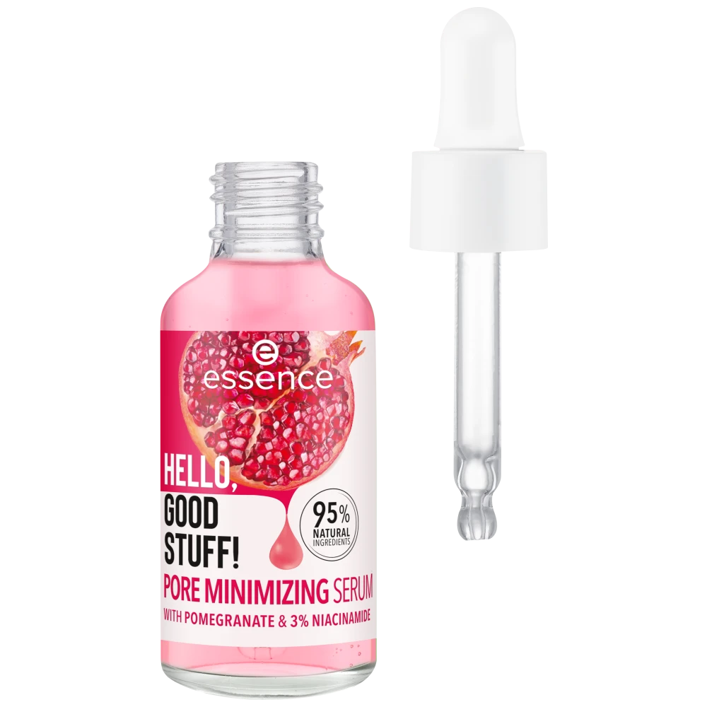 Achieve a visibly refined complexion with the essence Hello, Good Stuff! Pore Minimizing Serum. Formulated with 95% natural ingredients, including pomegranate fruit water and 3% Niacinamide, this serum leaves your skin soft and supple while visibly reducing the look of pores!