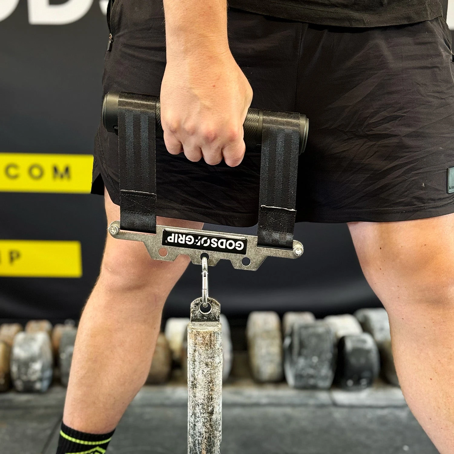 Perfect for hooking on to your cable machine or loading pin, you can even hit multiple angles with the selection of 3 carabiner positions.