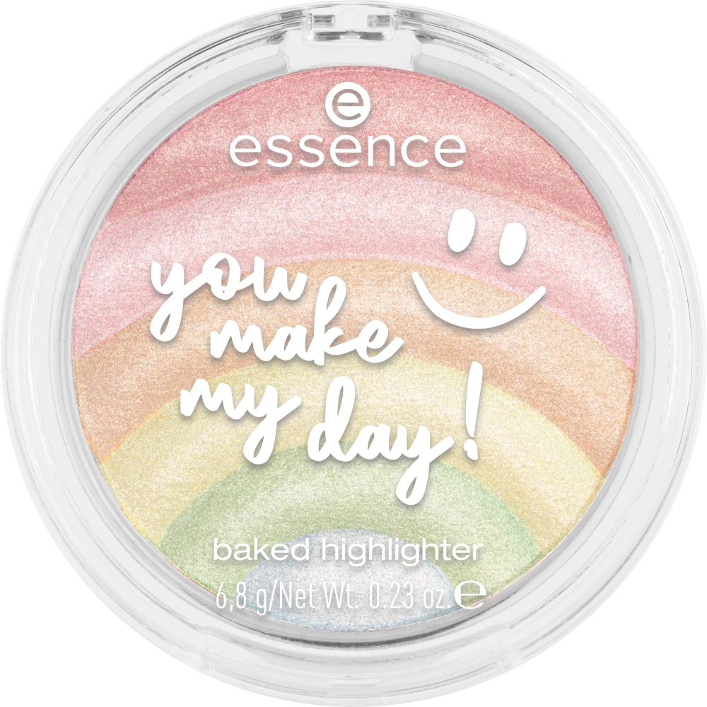 Light up your look with the essence You Make My Day! Baked Highlighter. This highlighter offers soft rainbow shades in dreamy pastels, letting you create a custom glow. Whether you swirl them together or use each shade individually, it’s your moment to shine.