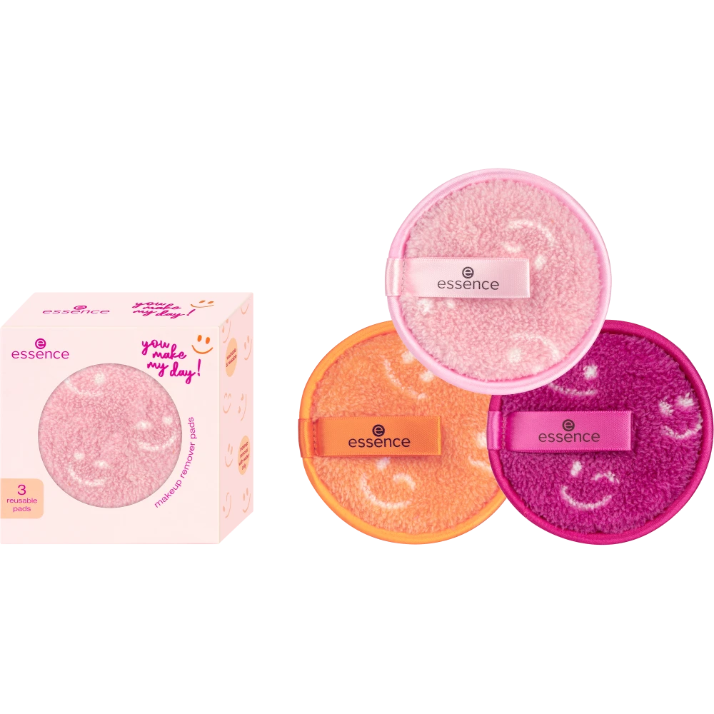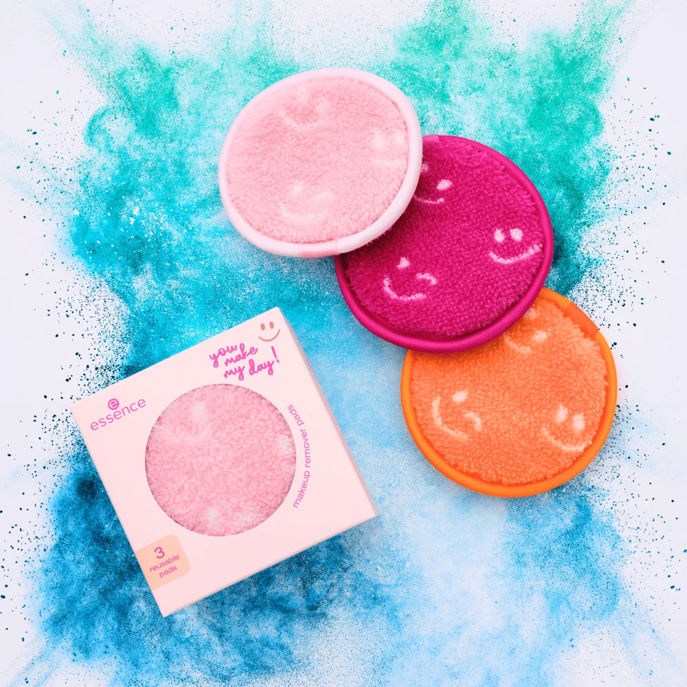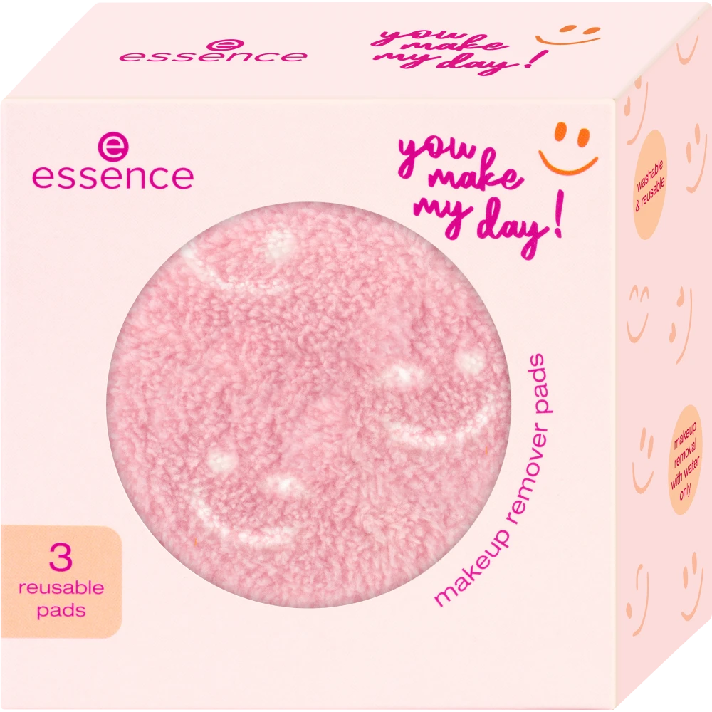 Freshen up with essence You Make My Day! Makeup Remover Pads. Effortlessly wipe away makeup using just warm water. Reusable and easy to wash, they’re a feel-good way to end your day with a smile.